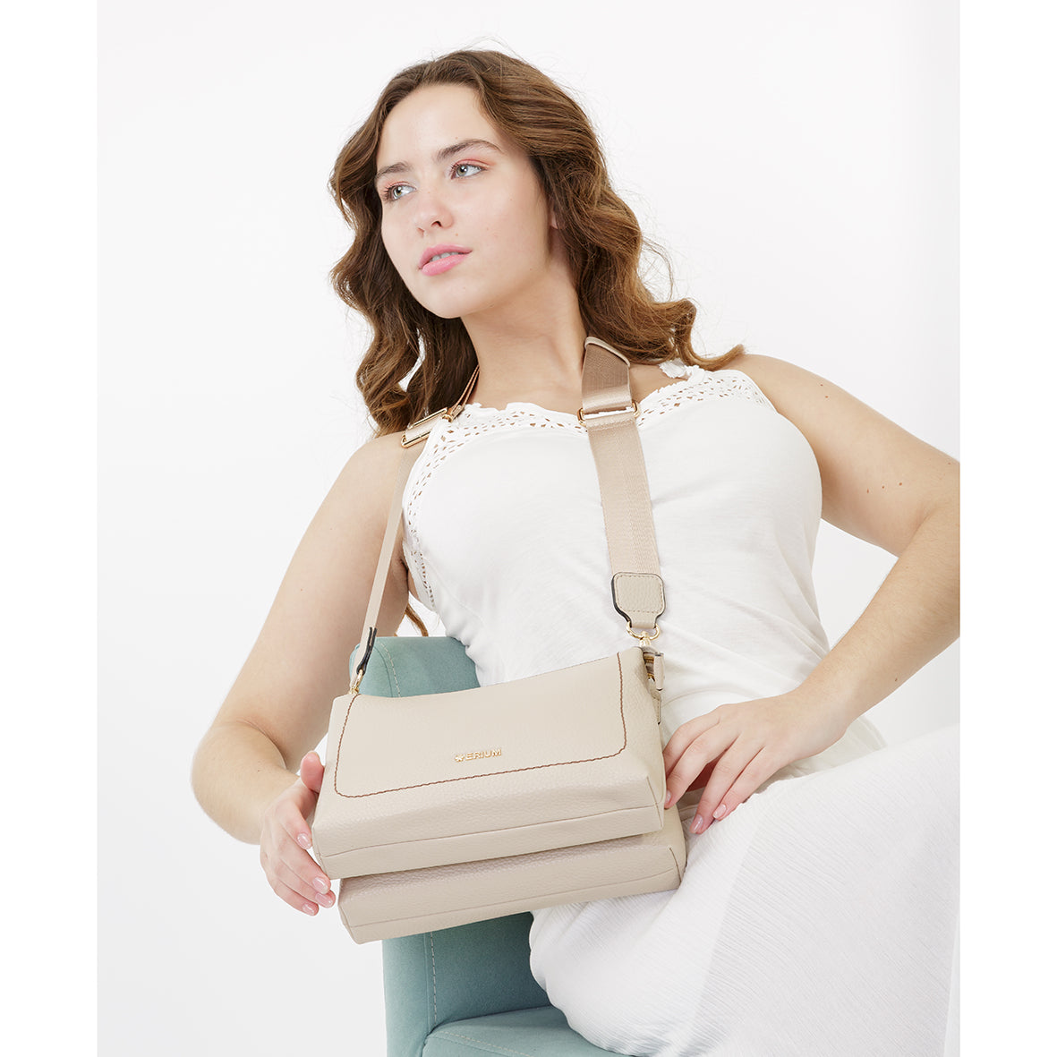 O interior é funcional e bem organizado, proporcionando espaço suficiente para transportar os essenciais do dia a dia com segurança. A alça larga e ajustável garante conforto no uso diário, permitindo utilizá-la a tiracolo ou ao ombro. Os detalhes metálicos complementam o design, conferindo-lhe um toque elegante e atual.