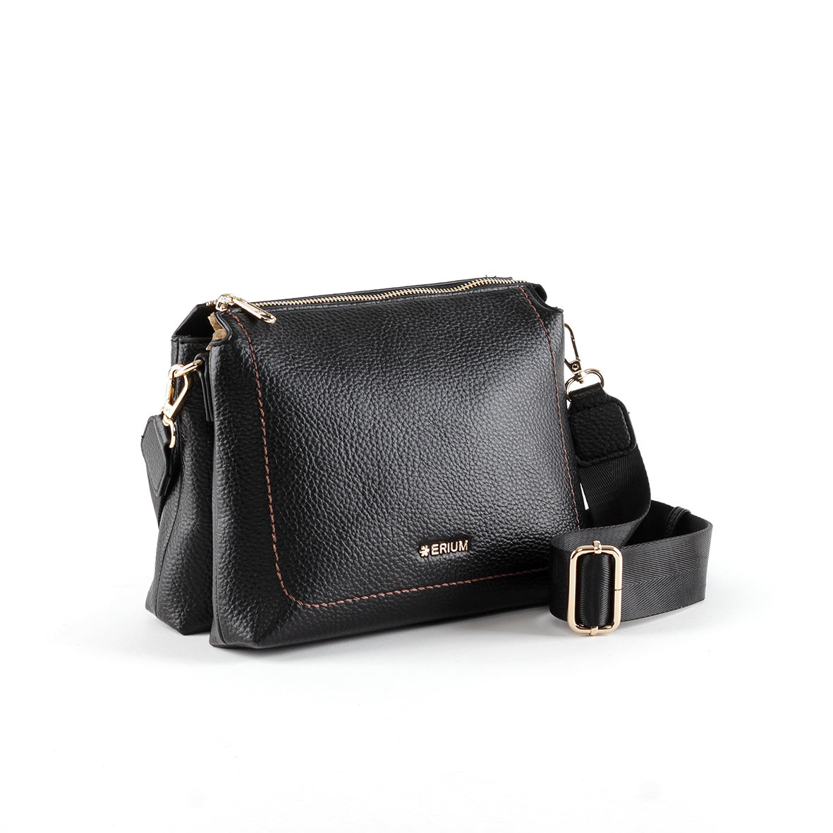 Mala de tiracolo Erium com dois compartimentos, tiracolo amovível e ajustável, e bolso exterior. Interior com fecho e bolso multiuso.