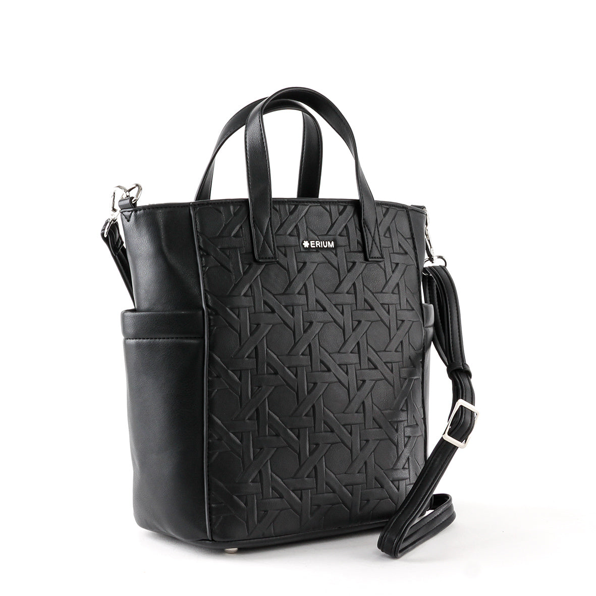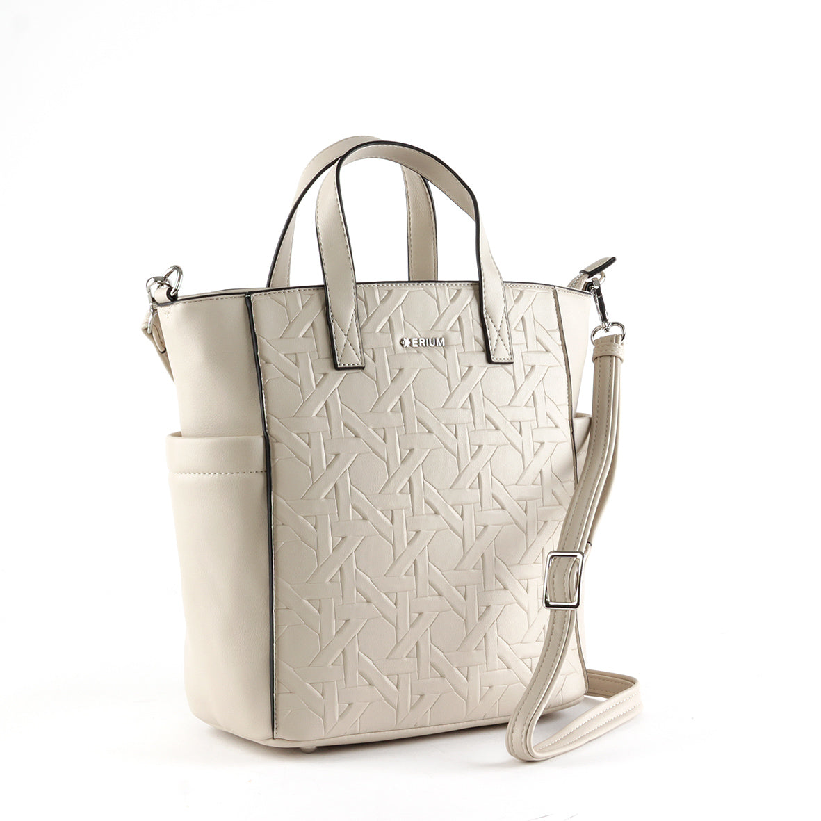 Esta mala de mão e tiracolo combina sofisticação e funcionalidade num design moderno e distinto. Confeccionada em material de alta qualidade, destaca-se pelo acabamento em relevo com padrão geométrico, que lhe confere um visual elegante e contemporâneo.
